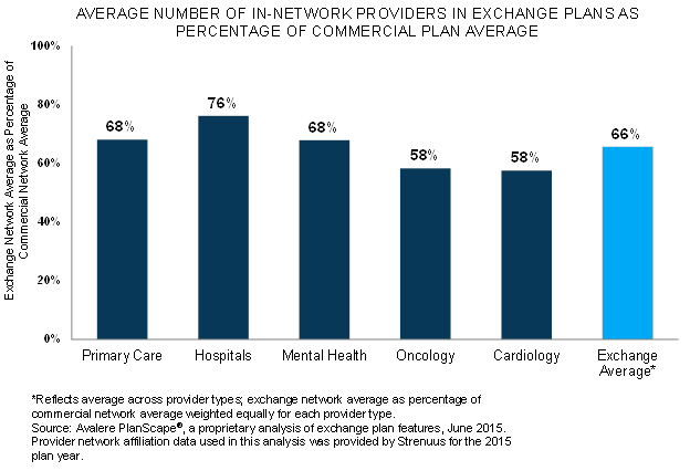Health Insurance Exchanges are one of the most interesting and potentially impactful features of the Affordable Care Act. The exchanges allow eligible individuals to compare health plans on an apples-to-apples basis and choose the one that's most appropriate for their individual circumstances.Health plans are interested in participating in these exchanges because they offer one of the few sources of member growth. Federal subsidies make exchange plans affordable for middle income buyers who make too much to qualify for Medicaid.Not surprisingly, exchange customers are price conscious shoppers. That means plans have to work hard to offer low enough premiums to be competitive. The Affordable Care Act outlaws some of the ways health plans used to stay competitive, such as charging different prices based on health status, refusing to cover certain patients, making exclusions for pre-existing conditions, and offering skinny benefits packages.One of the few things plans can do is to offer different networks of physicians, hospitals and other providers. Exchange plans have embraced the concept of "narrow networks," which offer a smaller than usual collection of providers as a way to hold down costs. I have heard and seen a lot of anecdotes about what this means in practice, but now there is some real data.Avalere has conducted an analysis of health plans in the top five exchange states to compare the size of exchange plan networks with the size of commercial networks in the same geographies. Sure enough, the plans included an average of 34 percent fewer providers on average, and 42 percent fewer oncologists and cardiologists.